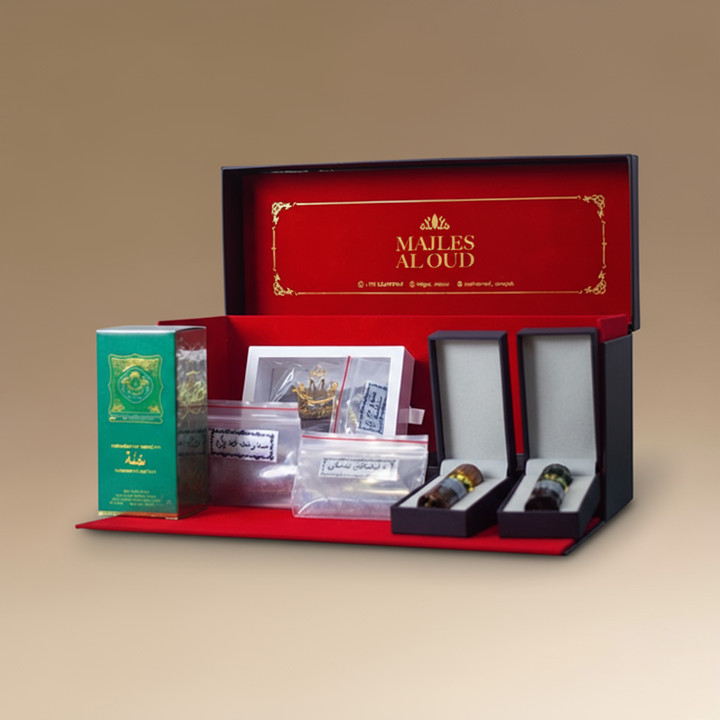 استكشف عالم الفخامة مع بوكس الفخامة، حيث يجمع بين ثلاثة انواع من أفخم أنواع العود الخشب الراقية، بما في ذلك السيلاني، الهندي، الماليزي،. كل قطعة تم اختيارها بعناية لتقدم لك رحلة عطرية لا مثيل لها، معززة بالتقاليد العريقة , ونوعين ادهان عود قديمه الهندي والكمبودي صافيه و عطر من انتاجنا الخاص بوكس الفخامة يعد بتجربة استثنائية، مصممة خصيصًا لمن يبحثون عن الجودة العالية والتميز الحقيقي.
